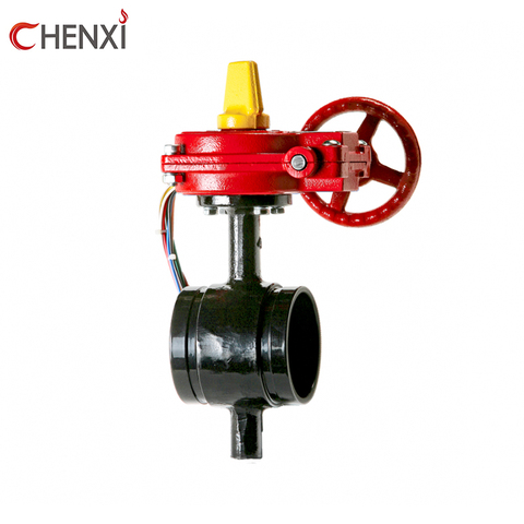 Válvula de borboleta padrão ul/fm/vds, válvula de fogo ranhurada com interruptor inxoidável/regulalmente fechada